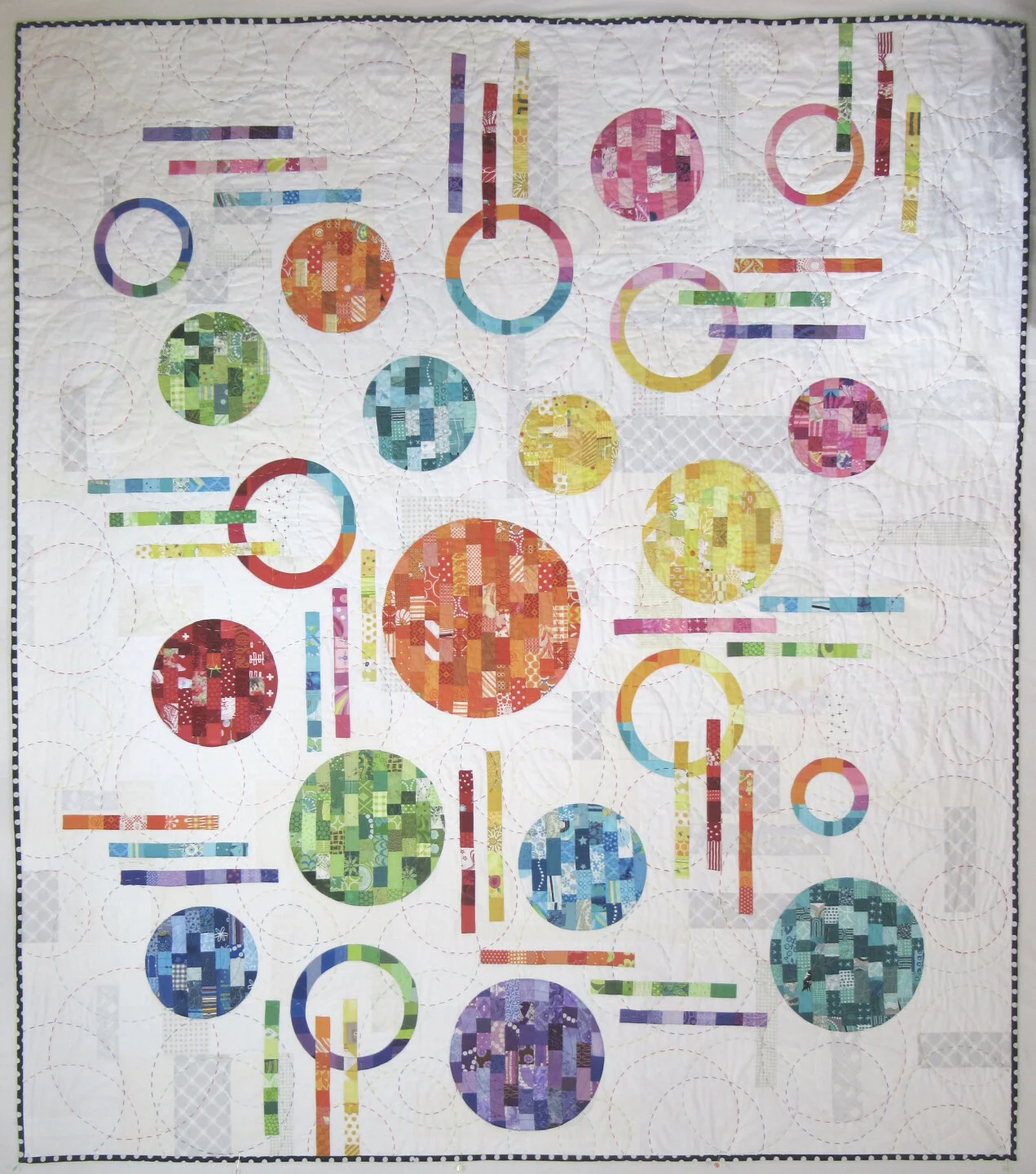 Make a modern quilt with curves/circles in the design.