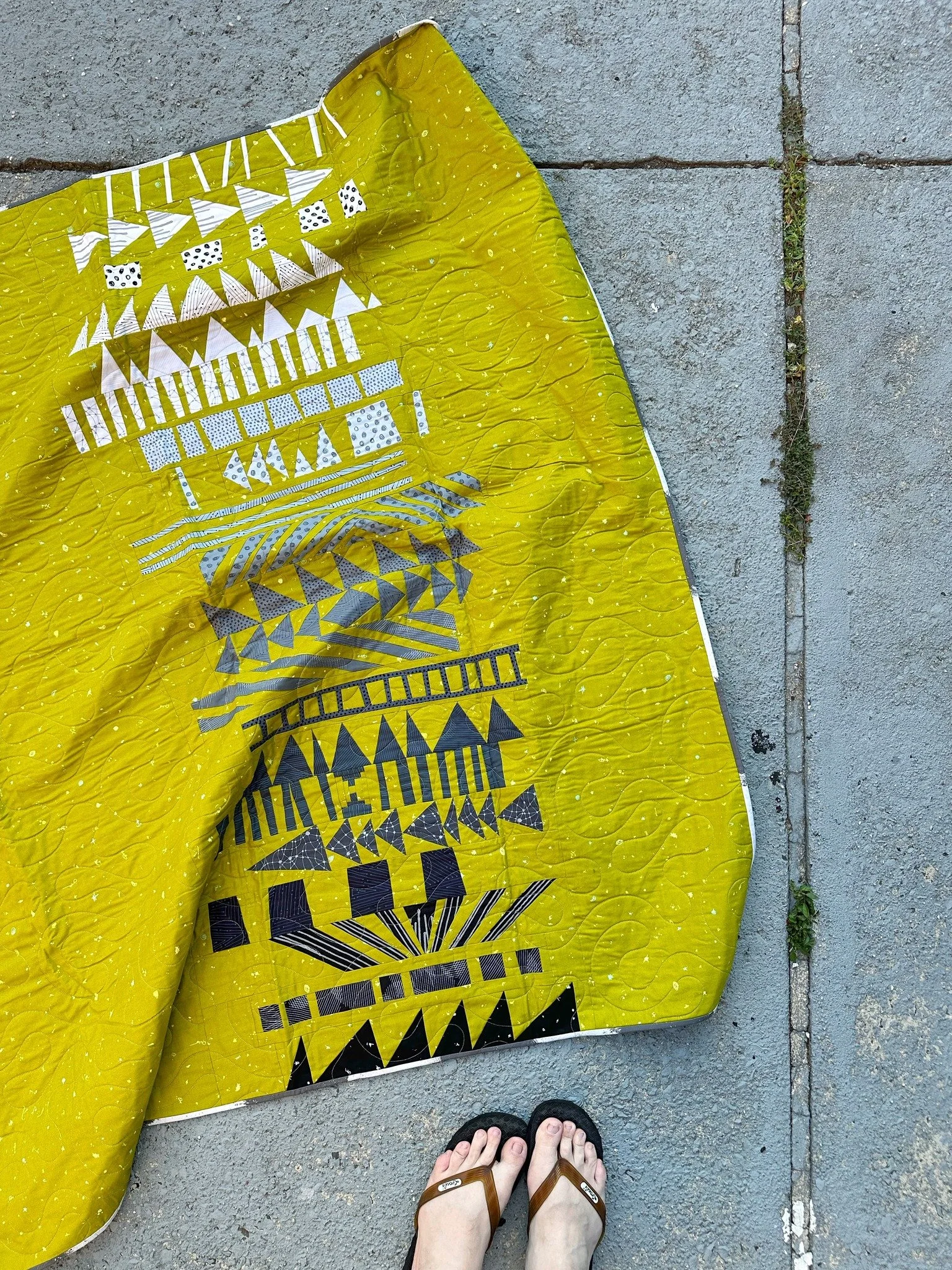 My grandmother is a remarkably talented and prolific seamstress. She taught me to sew in the Sicilian fashion, which is to say she would show me how to do something and I would have approximately 10 seconds to demonstrate that I had learned it perfectly before she’d abruptly pick me up and sew the seam herself. I never much cared for the finicky elements of garment making, so sewing took a backseat for a while. It wasn’t until I was in college that I discovered quilting. I began with sewing improvisational quilts before moving into modern traditional territory. I joined Instagram shortly thereafter and quickly found myself making long distance friends in the ever-growing quilting community via social media.